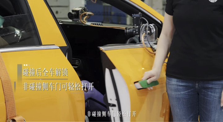 6、 对于大家最近热议的隐藏式车门把手,奔驰也有严苛的安全标准,从设计上具备安全冗余的。测试显示,发生碰撞后,车辆的高压电池可以毫秒级断电,门把手自动弹出,车门能从车外打开。即便是在不带钥匙的情况下,依然有条件打开车门把手,重要的是,不光车门把手可以弹出,它还足够能承受外力强行打开的压力,不会一拉就断。张焱介绍说:“单在全新奔驰纯电CLA的门把手上,研发测试就用掉了2500万人民币,是行业的3倍之多。”