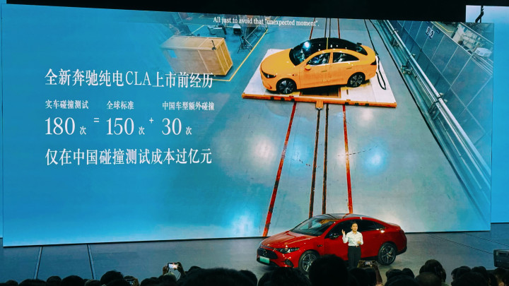 2、 全新纯电CLA在来到国内之前,就已经经历了150次实车碰撞——针对中国加长版车型又额外加做了30次。CLA单在碰撞测试上的成本就过亿。