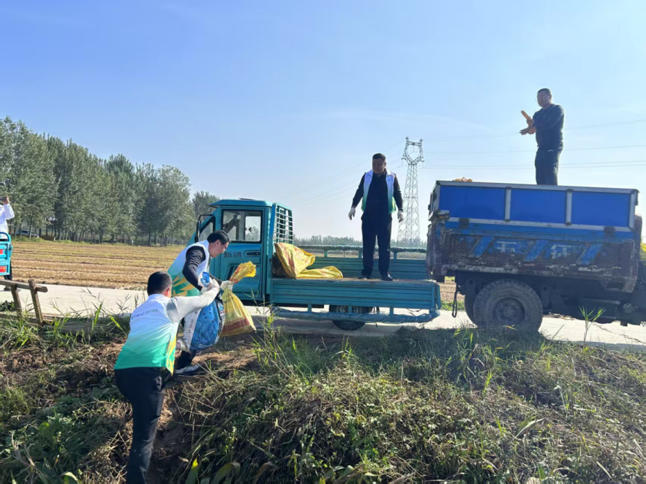 中国人寿财险山东省聊城市中心支公司组织“党员先锋抢收队”帮助农民抢收秋粮。